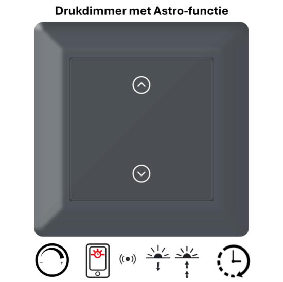 Push button | Astro time switch | LED dimmer | 230VAC - 500VA/2.1A | Arrow pressure | 9010